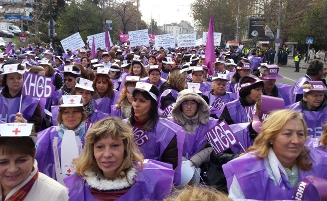 Хиляди протестиращи от цялата страна се събраха в столицата на Националния протест на КНСБ и настояха за за защита на социалните им права и по-високи доходи. В протеста, под мотото „Доходи, права, достойнство” се включиха и стотици медицински сестри.
