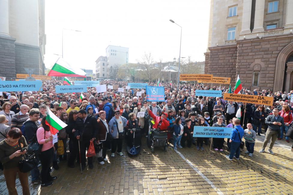 Близо 4000 българи с увреждания се събраха на протест под прозорците на Министерски съвет, за да поискат от властта да бъдат чути и да получат право на достоен живот. Премиерът Бойко Борисов ги чу и още вчера нареди на здравния министър Кирил Ананиев да оттегли скандалните предложения за оценка на степента на увреждане на хората. Според изтеглените вече текстове процент инвалидност вече трябваше да се получава само за едно заболяване, което щеше да отнеме помощите на над 200 000 души.