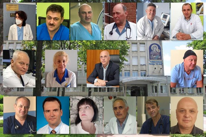 Директорът д-р Славчо Близнаков; пулмологът проф. Коста Костов, бившият здравен министър и един от основоположниците на инвазивната кардиология у нас доц. Божидар Финков; кардиохирургът доц. Васил Гегусков; кардиологът доц. Васил Велчев; травматологът доц. Сашо Асьов; завеждащият Клиниката по очни болести доц. Борислав Дъбов;  шефката на реанимацията доц. Мария Атанасова; акушер-гинекологът д-р Елка Дачева; гастроентерологът д-р Божидар Томов; травматологът д-р Евгени Нешев; ортопедът д-р Ивелин Костадинов; неврологът д-р Нурфет Алиоски; началникът на Спешното отделение д-р Ана Николова; лицево-челюстният хирург д-р Константин Димов и началникът на Инфекциозната клиника д-р Петър Петров.