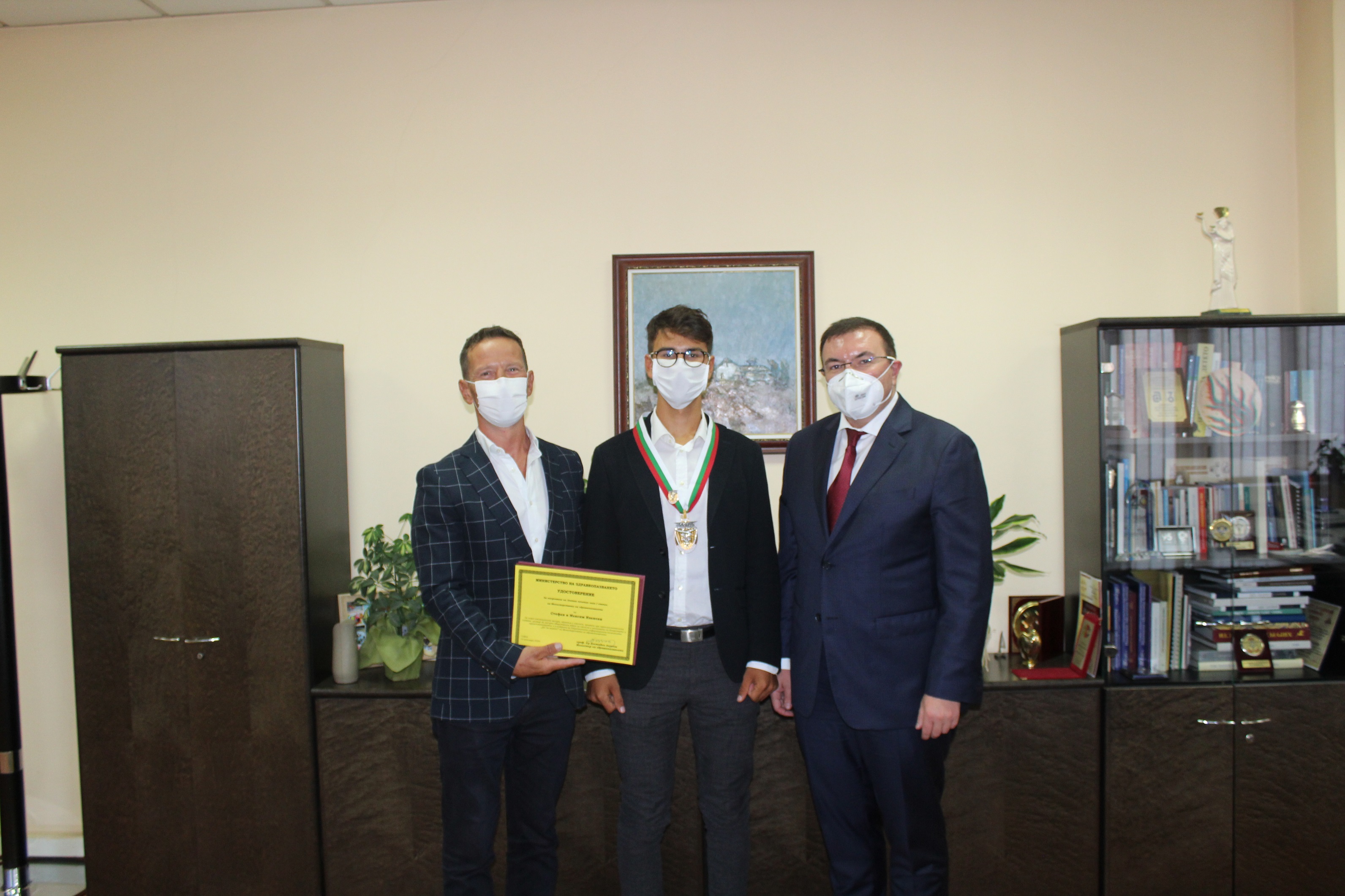 Здравният министър проф. Костадин Ангелов връчи на Максим и Стефан Иванови Златен почетен знак I степен на МЗ за приноса им в насърчаването на обществения дебат за трансплантациите