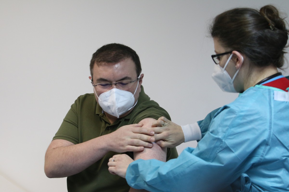 Проф. Костадин Ангелов се ваксинира пръв преди точно една седмица, досега не е имал никакви оплаквания, освен лека болка на мястото на убождането през втория ден след имунизацията