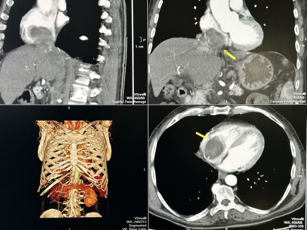 След постъпването на пациента в лечебното заведение е направен скенер, от който се установяват злокачествените образувания в кухините на сърцето и наличието на две огромни туморни огнища в черния дроб. Туморът се разпространява и в коремната област като обхваща и запушва прехода на вена, преминаваща през черния дроб. Размерът на туморното образувание в този участък е с дължина 17 сантиметра и широчина 3 см.