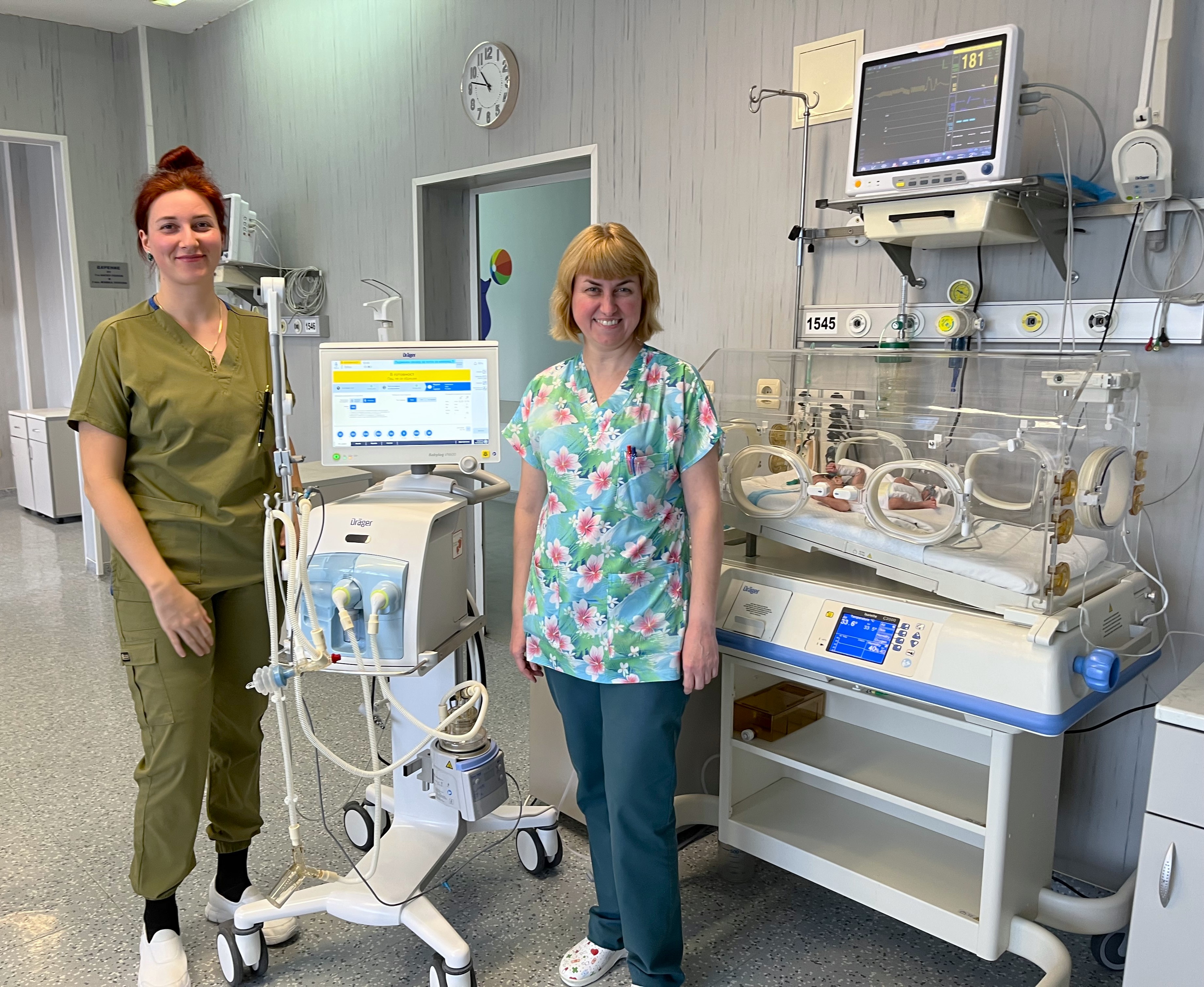 Неонаталният респиратор Babylog VN 600 е жизнено важен за лечението им, защото осигурява иновативна терапия за новородените и по-големите деца. Апаратът притежава специализирани възможности за инвазивно и неинвазивно обдишване, поддържа режими, предпазващи белите дробове и мозъка през целия дихателен цикъл. Може да бъде интегриран лесно в болнични среди, фокусирани върху грижи за развитието на новородените. Този модел има нов потребителски интерфейс и дизайн, което прави работата с него по-лесна и по-ефективна. Той е на стойност 52 920 лева.