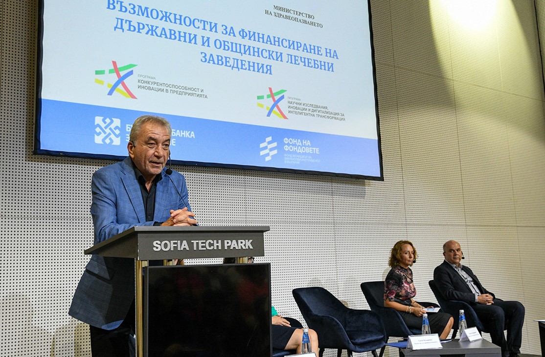 Той добави, че вторият инструмент за подпомагането на лечебните заведение е те да участват по оперативните програми, които Министерството на иновациите и развитието управлява, а третият подход е по линия на Фонда на фондовете. „Фактически болниците ще имат достъп до 420 млн. лева”, подчерта Карадимов. По думите му няма нищо по-естествено държавната банка на България, която действа с мандат на правителството, да интервенира в сектор здравеопазване с пазарни механизми, но да гарантира прозрачността на изразходваните средства.