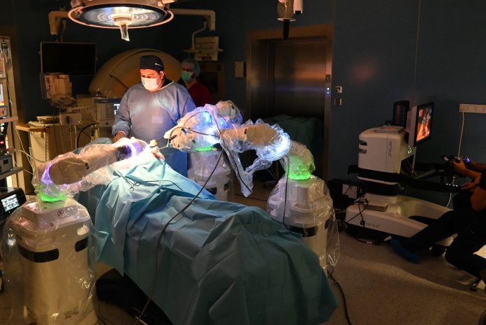 Лекари от Втора клиника по хирургия и Клиниката по урология оперират с високотехнологичен хирургичен робот с изкуствен интелект