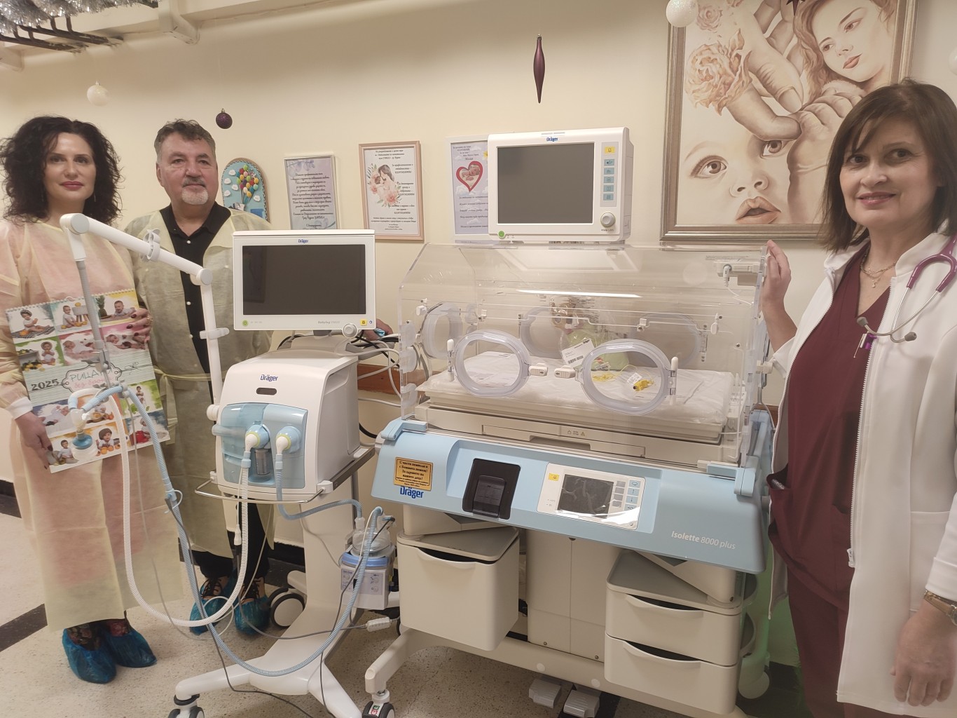 На днешния ден, в който по нов стил се отбелязва Денят на родилната помощ, сем. Петрови предаде дарението на екипа на Отделението по неонатология. То бе осветено от отец Петър от църквата „Успение Богородично“ – Несебър.