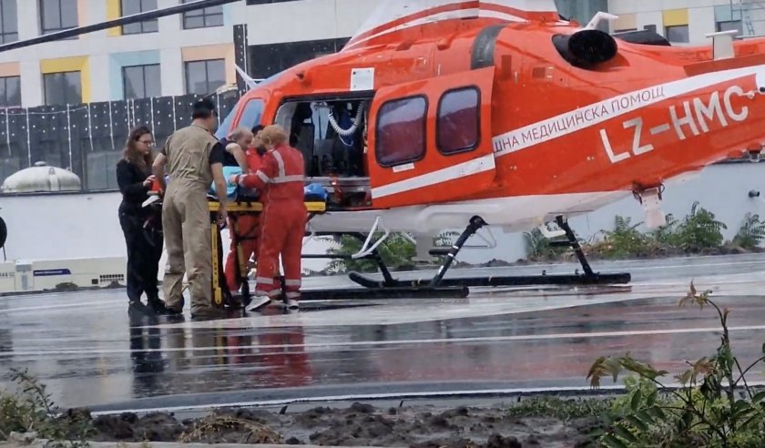 Въздушната линейка излетя днес малко преди 13.00 ч. от площадката на УМБАЛ-Бургас. По думите на проф. Младенов в реанимацията на бургаската болница досега за 12 дена е направено всичко възможно, но детето остава в кома и в тежко състояние.  За съжаление състоянието на майка му Христина е необратимо – тя е в клинична смърт, след като АТВ-то преминало буквално през черепа й. Лекарите обаче все още не изключват апаратите, които поддържат сърцето й, а всички се надяват на чудо.