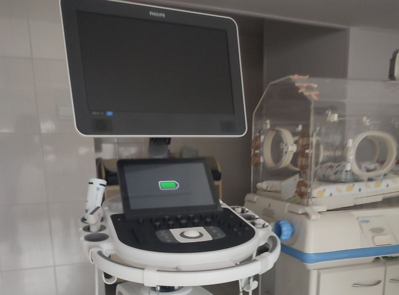 Респираторът и ехографската система, специално оборудвана за изследване на бебета и малки деца.