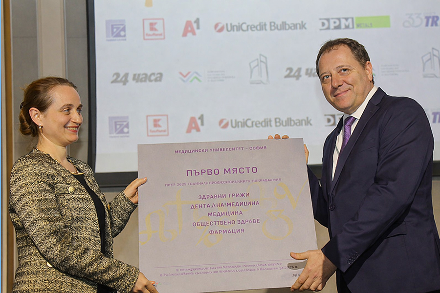 На церемонията „Академични Оскари 2025“ МУ-София официално бе награден за лидерските позиции в петте си професионални направления, според резултатите от Рейтинговата система на университетите в България. Ректорът проф. д-р Бойчо Ланджов лично получи отличието за поредна година.