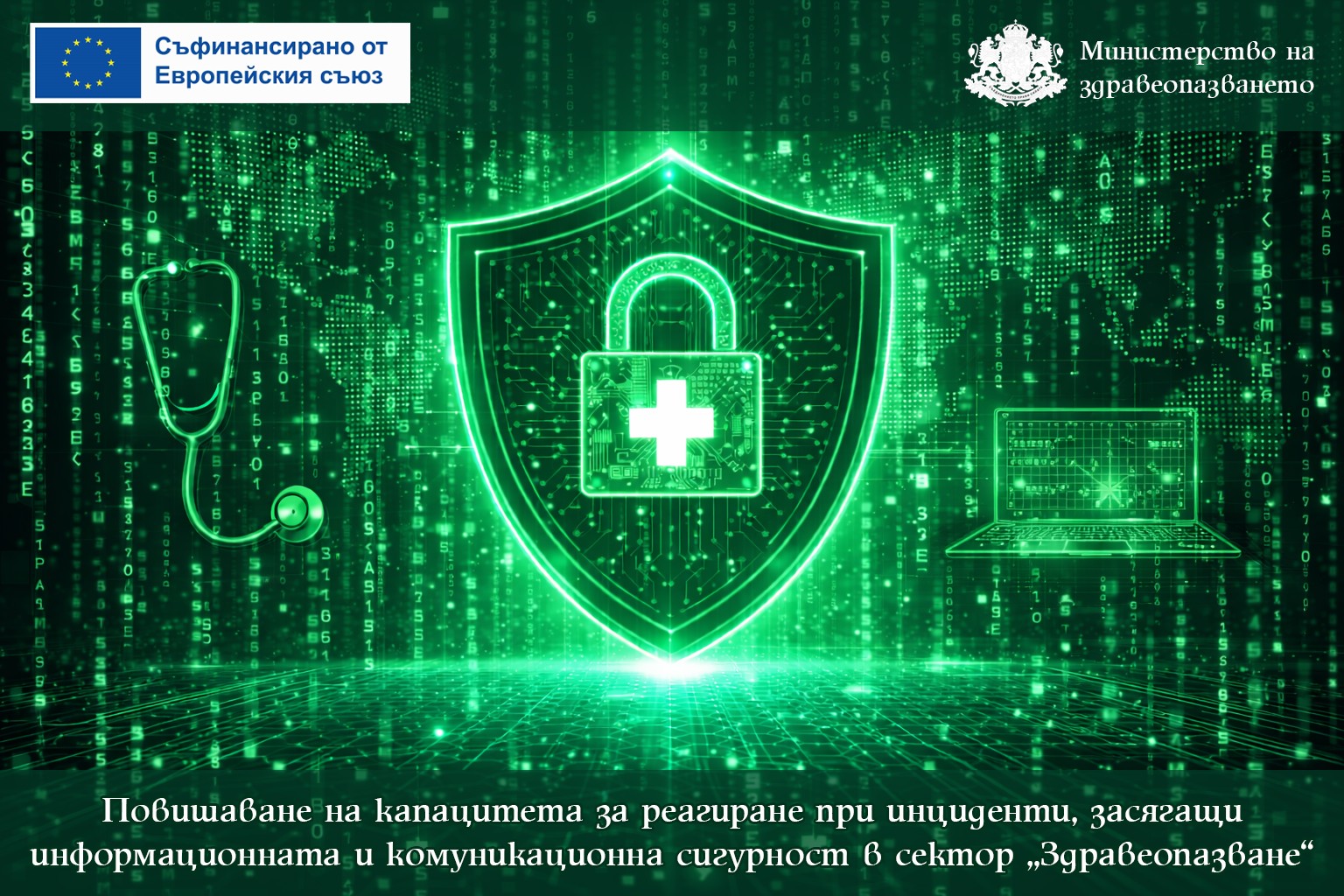 Мярката е част от проекта за повишаване на капацитета за реагиране при инциденти, засягащи информационната и комуникационната сигурност в здравеопазването, финансиран с европейски средства по Програма „Научни изследвания, иновации и дигитализация за интелигентна трансформация“ 2021-2027. Проектът стартира през 2024 г., като значителна част от предвидените дейности вече са реализирани.
