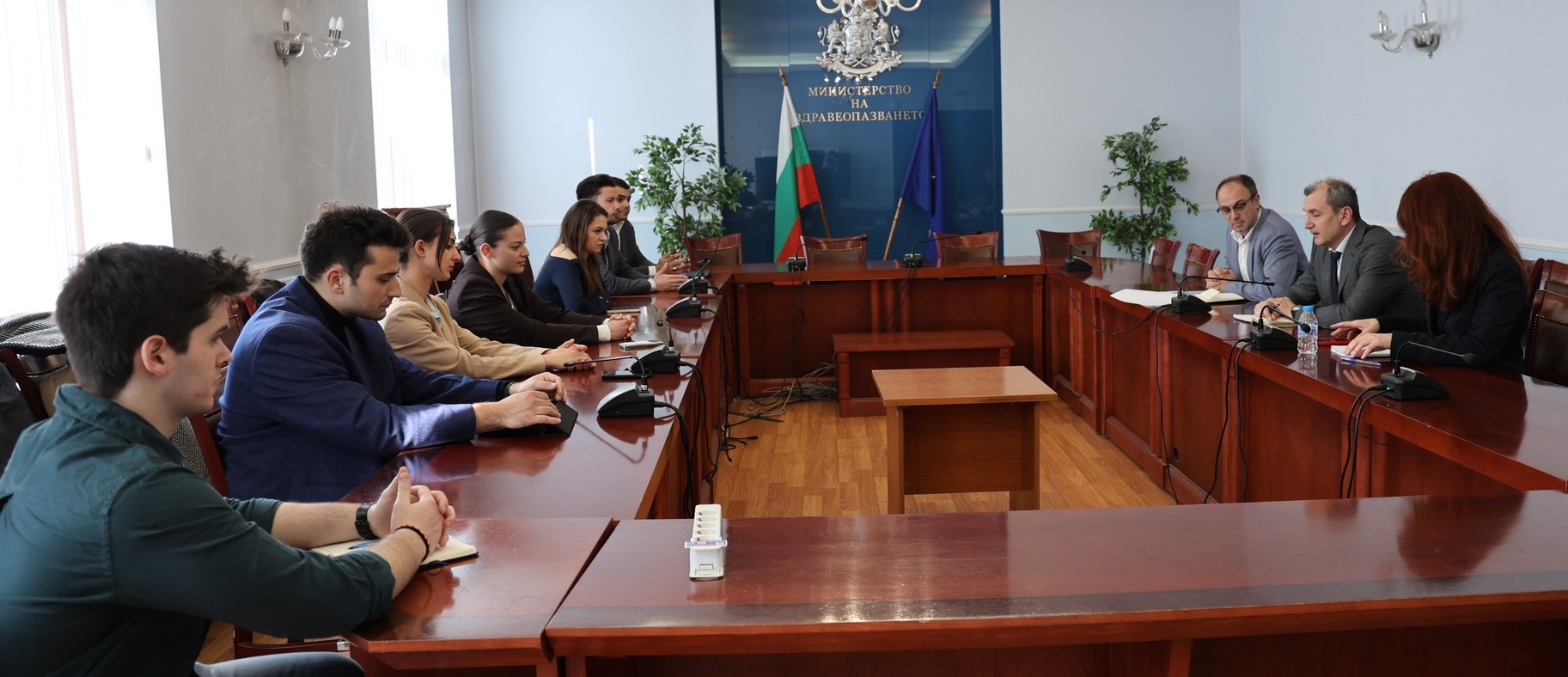 Основна тема на разговора бяха проблемите пред специализантите и възможностите за подобряване на условията за придобиване на специалност в България,, уточниха от МЗ. По време на срещата младите лекари поставиха редица въпроси, свързани с достъпа до специализация, прозрачността на конкурсите и условията на работа.